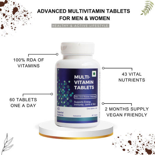 Multivitamin For Men & Women with Omega3,Probiotics,Vitamin C, D & E, Zinc, Ginseng, Multiminerals For Immunity, Energy, Stamina, Antioxidants, Hair & Skin, Clinically Tested Ingredients- 60 Tablets