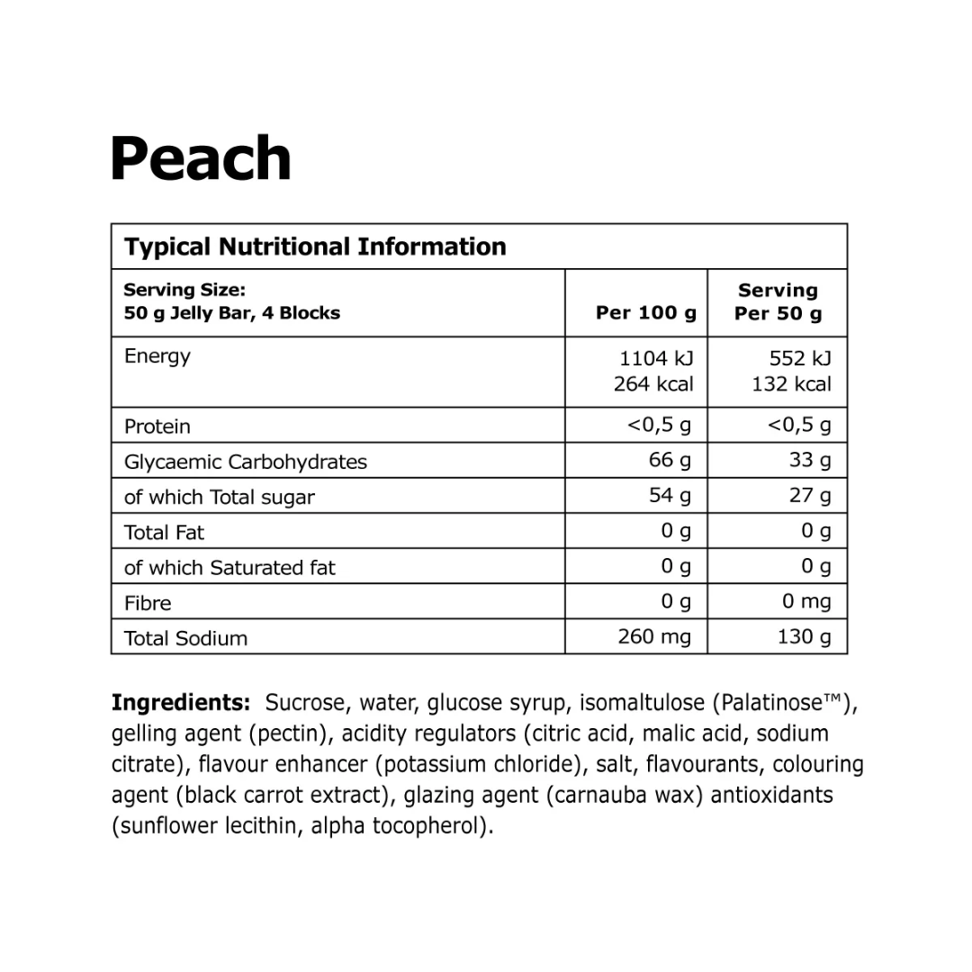 - Multi-Transportable Carbohydrates – Stable energy with Palatinose and other carbs to deliver ready-to-use energy and delay bonking by sparing glycogen, which the body can quickly turn into fuel when needed.