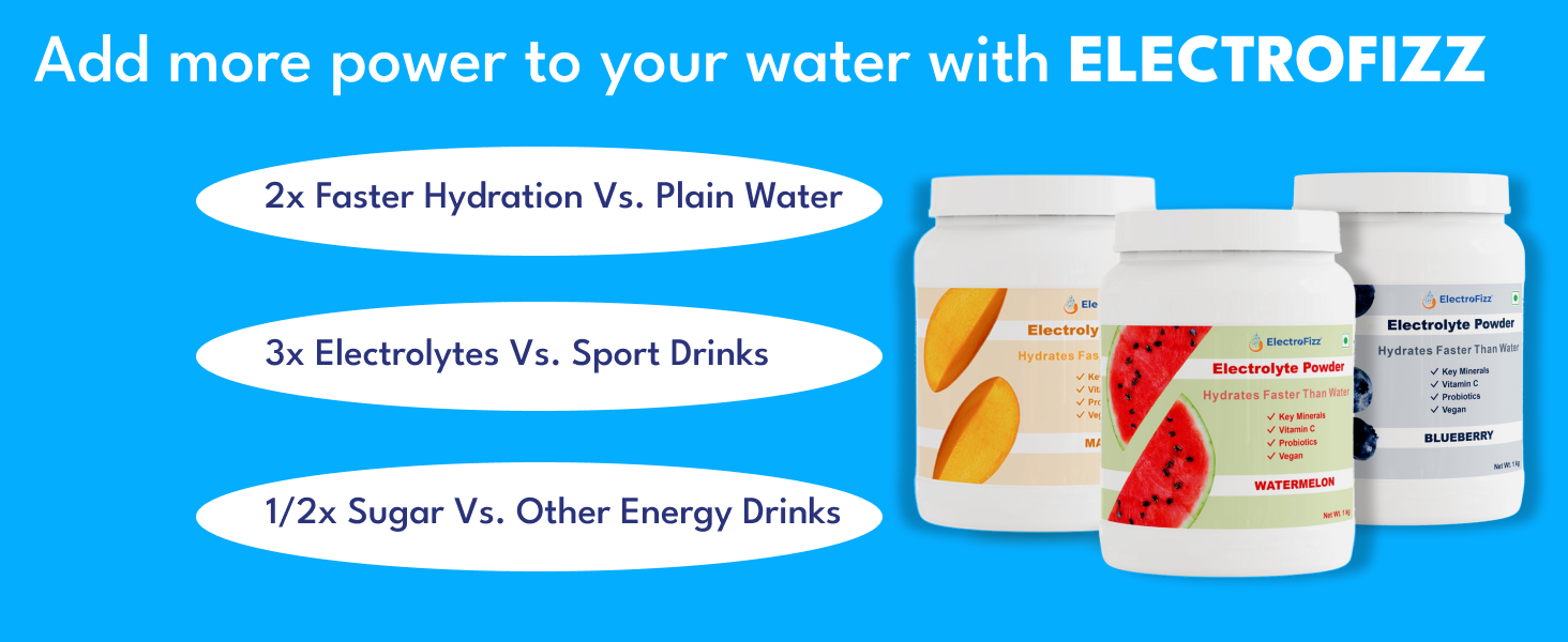ElectroFizz Electrolyte Powder 100 servings | Minerals, Probiotics & Vitamin C- 1 Kg Jar Pack - Blueberry Flavor