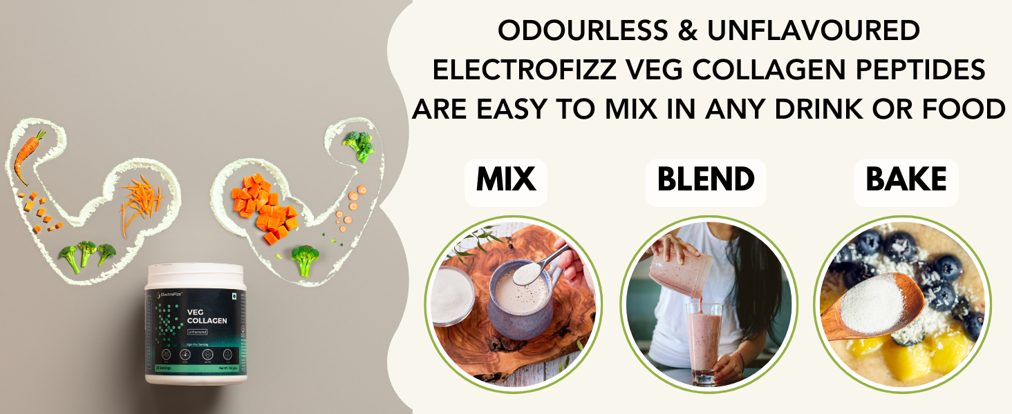 - VEGETARIAN COLLAGEN POWDER: Extracted from vegetarian source through enzmymatic process, ElectroFizz Veg Collagen Peptides is made from plant-based ingredients, which means it is an animal-free alternative to traditional collagen, making it suitable for those who follow a vegan, vegetarian or plant-based diet
