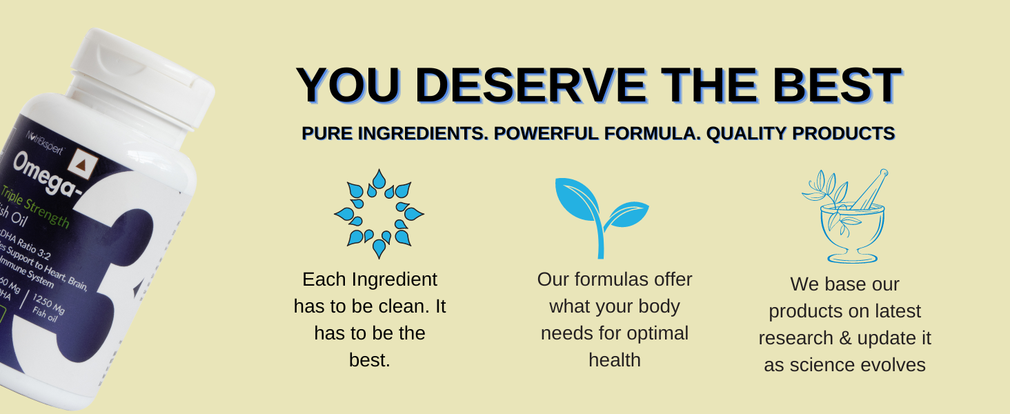 - ENHANCES MUSCLE RECOVERY- Top National & International level Indian athletes have felt better muscle recovery with NutriEkpert Triple Strength Omega 3 fish oil. It has helped reduce post-workout muscle soreness and enhanced recovery process